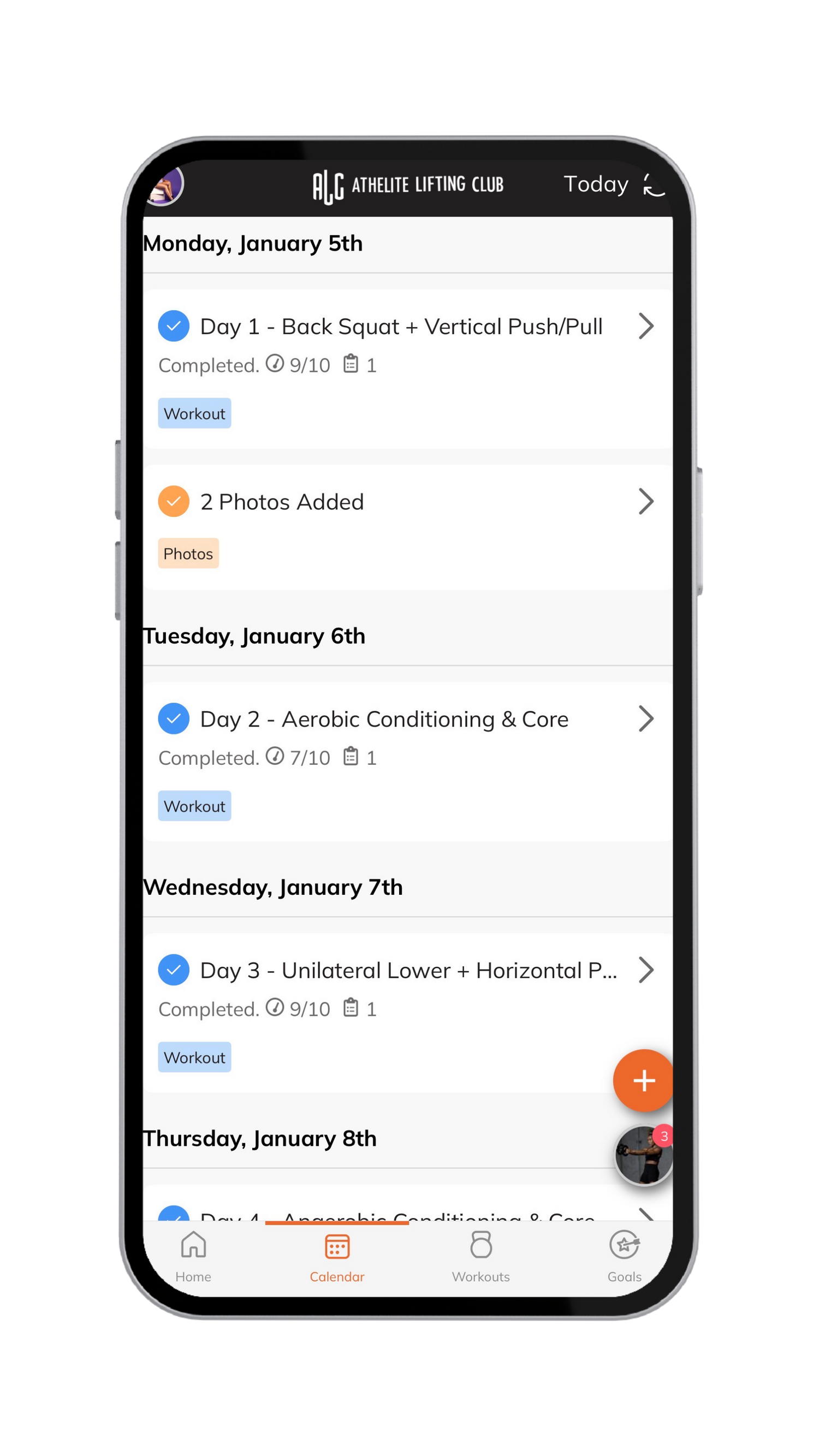 Workouts evolve each month inside the block. Volume and intensity adjust so you continue building without plateauing.